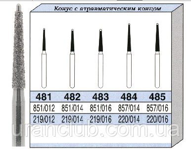 Алмазные боры Dentex Конус с усеченным концом FG F222 Красный